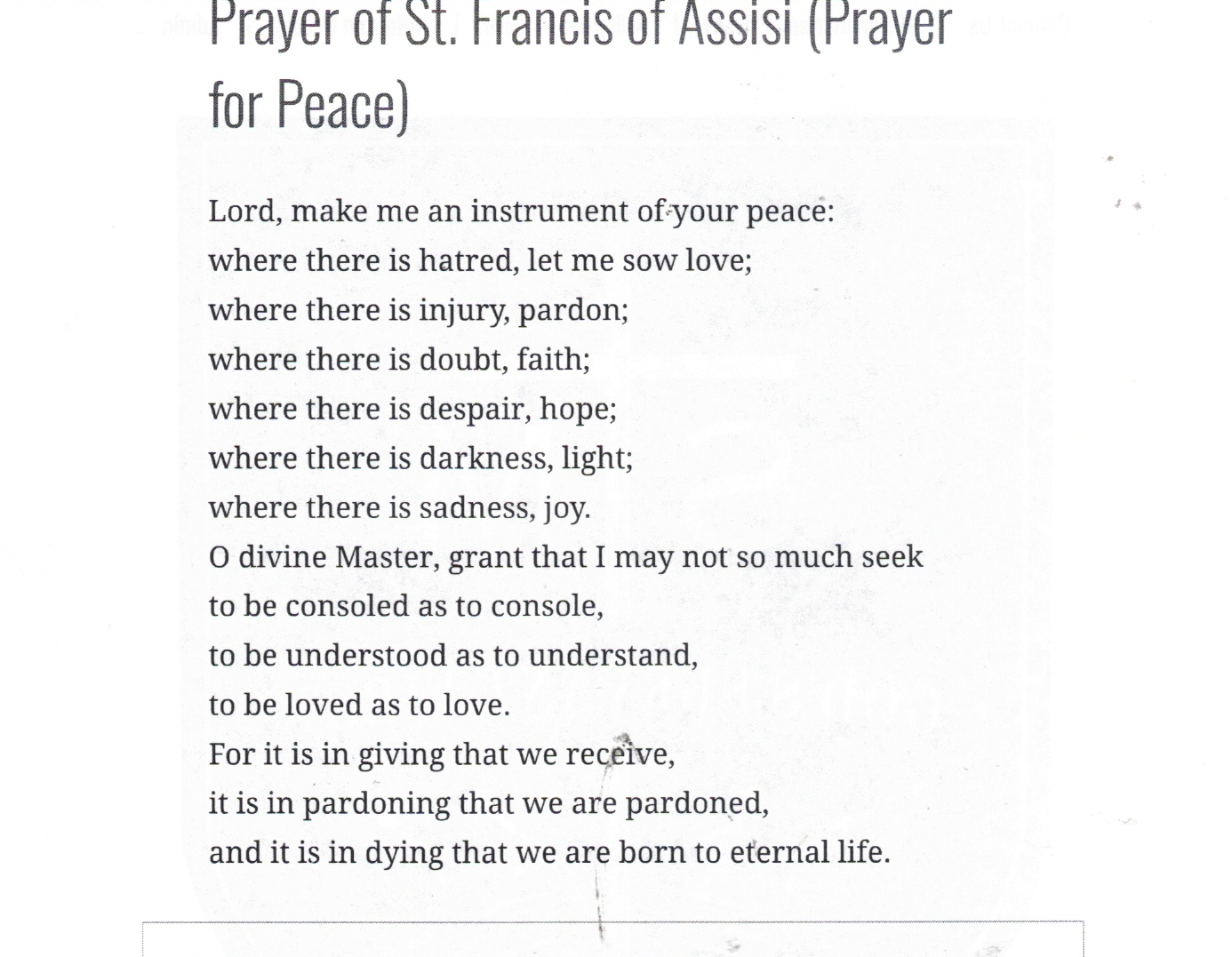 Prayer by St Assissi